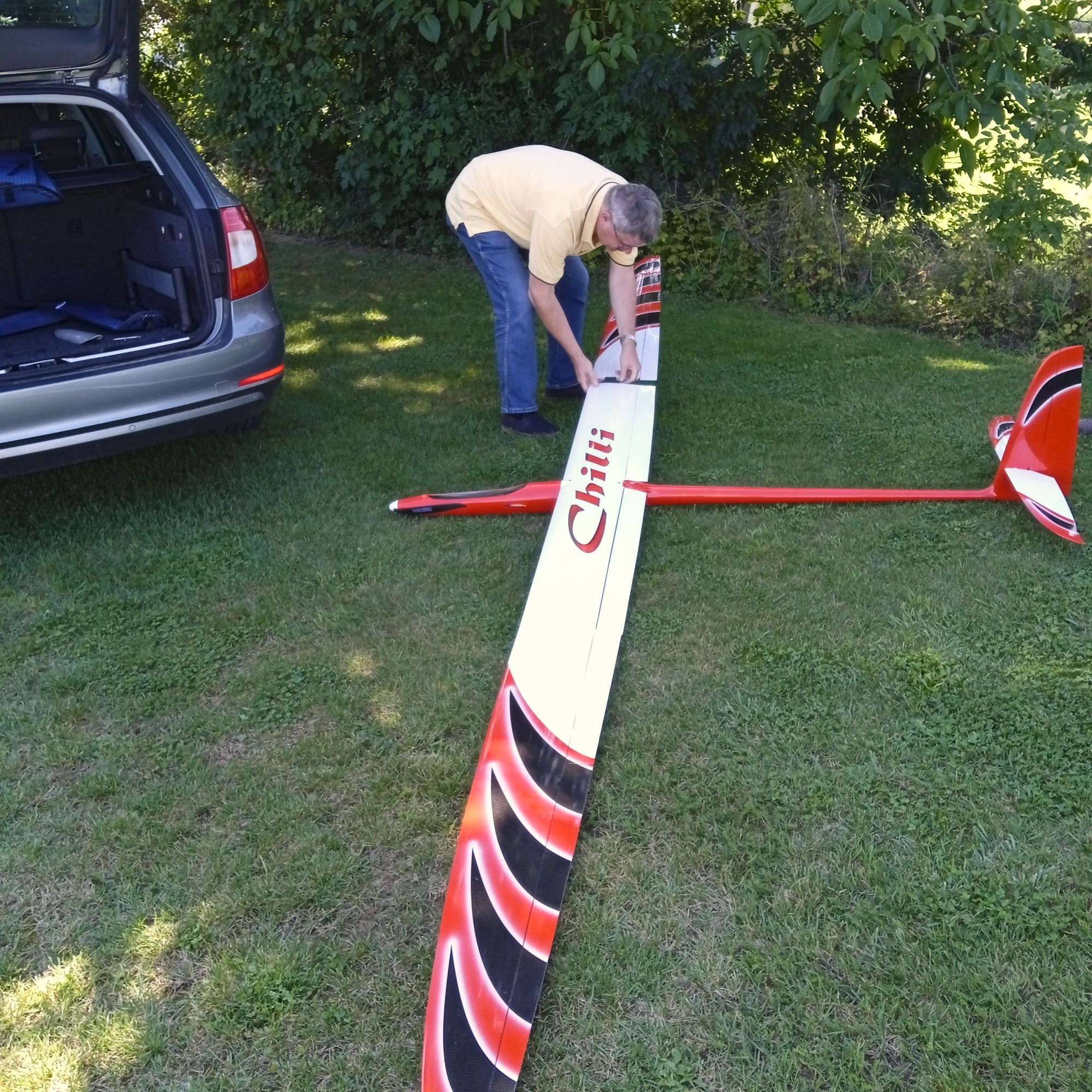 Marcel und sein Chilli von Valenta. 4,65m Spannweite, Vollcarbon, ca. 7kg Fluggewicht und 2KW Antriebsleistung.
